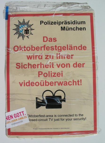Oktoberfest wird videoüberwacht. Plakat Polizei München, Oktoberfest 2009