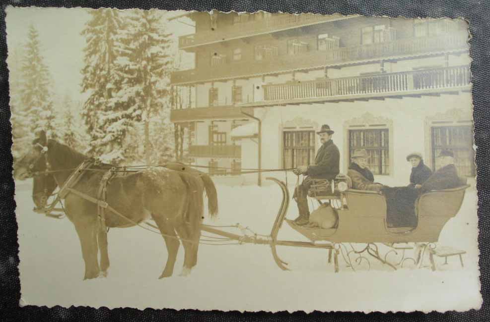 Zweispänner-Kutsche mit Kufen, Eibsee bei Garmisch, 1926
