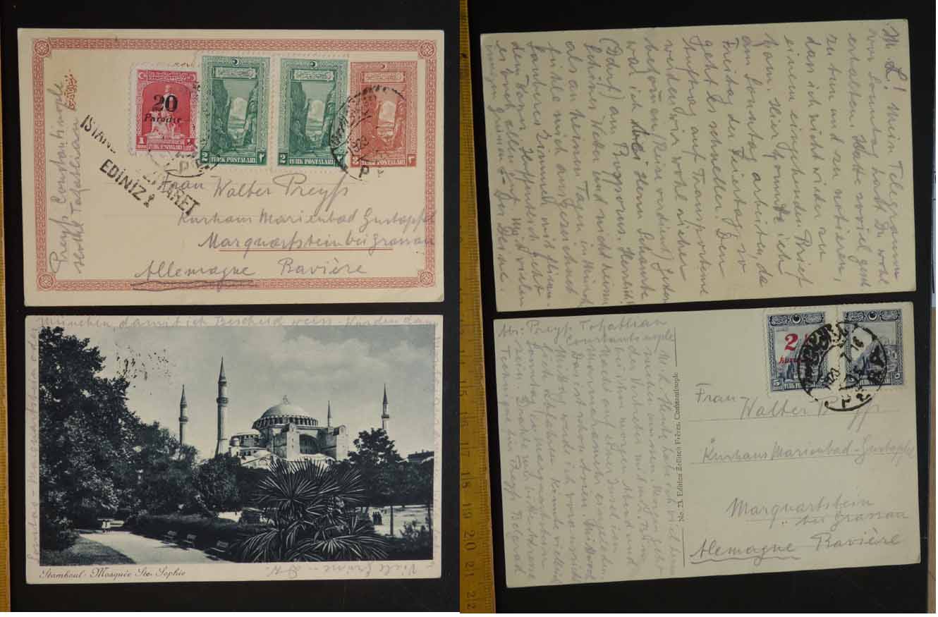 Ertel Werke für Feinmechanik, München. Postkarte aus der Türkei 1929, Auftrag erhalten