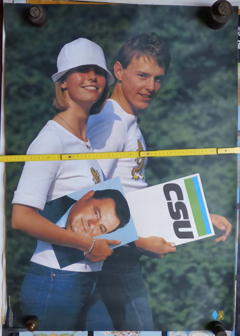 CSU-Wahlplakat um 1978: Jugendliche mit CSU-Hemden und Franz Joseph Strauss Foto